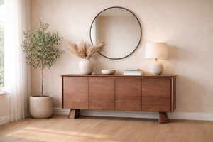 Then there's the solid walnut display cabinet — a true statement piece. Glass-fronted upper shelves to showcase your favourite ceramics and glassware, with generous closed storage below. Functional and gorgeous, which is honestly the dream combination.