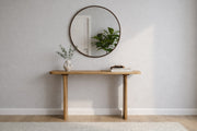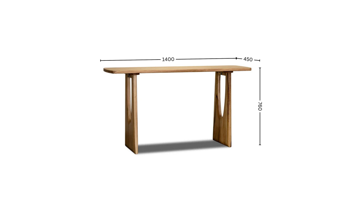 Featuring a sculptural leg design with curved cut-out detailing, Beckett blends architectural form with everyday functionality. The slim rectangular top makes it ideal for entryways, hallways, or behind a sofa.