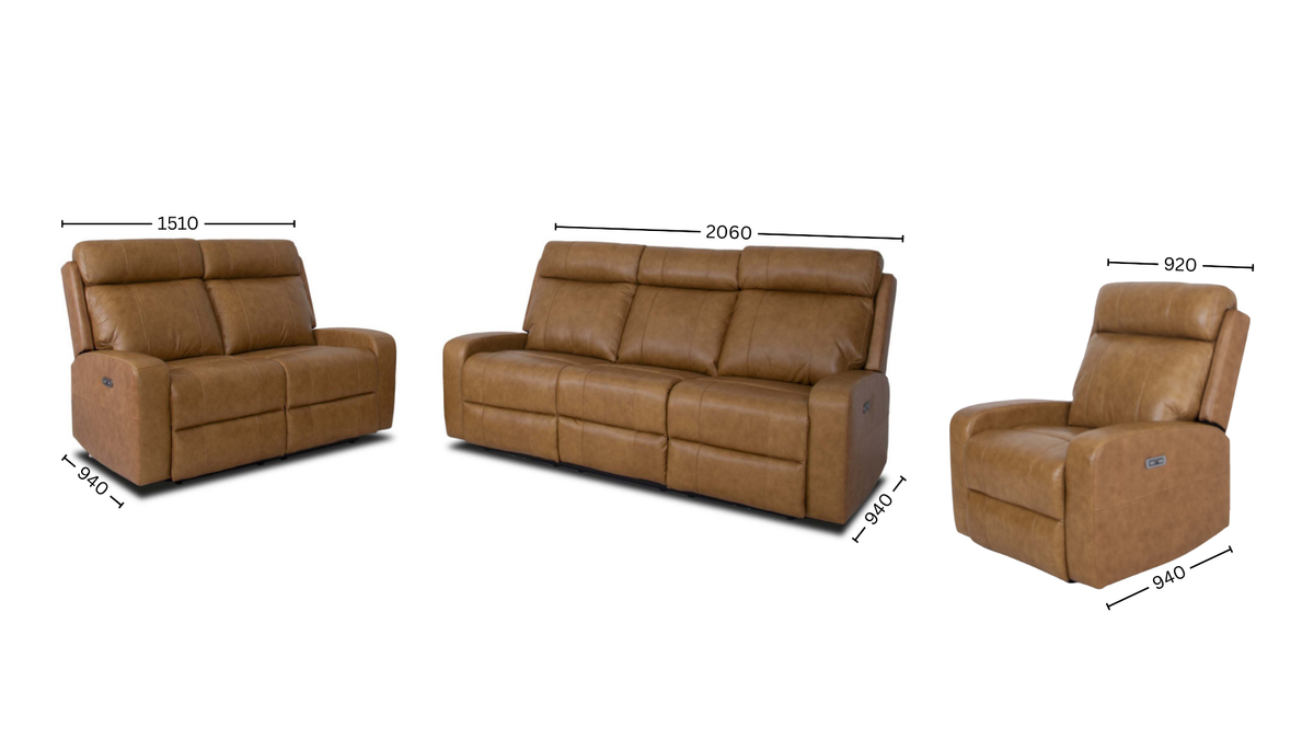 Available as a leather recliner armchair, 2 seater recliner sofa, or 3 seater electric recliner, Henry provides flexible sizing options to suit apartments, family homes, and open-plan spaces.
