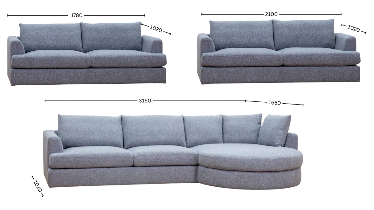 The rounded chaise encourages relaxed seating and casual lounging, making the Ivy Sofa ideal for family living rooms, open-plan homes, and contemporary interiors. Its curved form softens the overall silhouette while maintaining a clean, modern aesthetic.